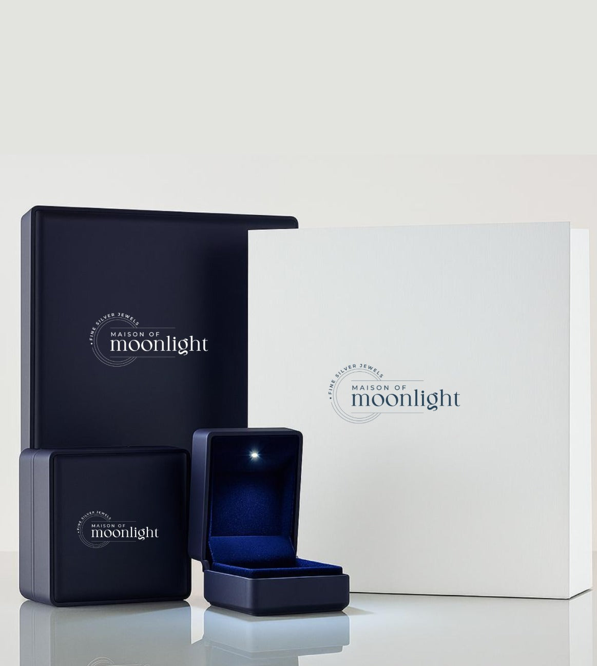 Each piece of jewellery is presented in our signature light-up jewellery box, which illuminates beautifully when opened to highlight your piece. To ensure it arrives in perfect condition, the box is further protected by a sturdy white outer box during shipping!